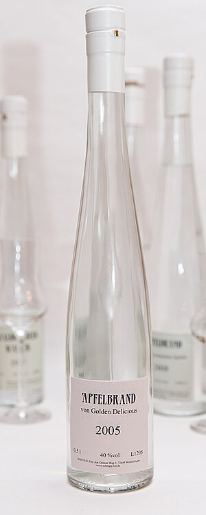 Er wurde 1890 in der USA als »Zufallssämling« gefunden. Im Handel ist die Sorte seit 1916. Der Apfel reift Anfang bis Mitte Oktober und hat eine gute Lagerfähigkeit. Das Destillat ist sehr aromatisch und lässt den Golden Delicious unschwer erkennen. Wie alle Apfelbrände benötigt das Destillat längere Zeit zur vollständigen Entfaltung seines Aromas.
