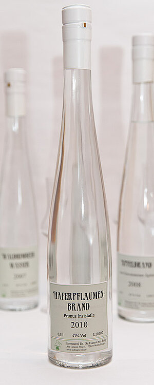 Ihren Namen verdankt sie der Tatsache, dass sie zur Zeit der Haferernte reift. Die Haferpflaume ist eine Wildpflaumenart, Herkunftsgebiete sind Südeuropa, Nordafrika und Kleinasien bis zum Kaspischen Meer. Dort wurde sie schon in vorgeschichtlicher Zeit kultiviert. Die Früchte sind oval von schmutziggelber bis grünlichgelber Farbe. Die Destillate sind von unverwechselbarem Aroma und erinnern nur entfernt an andere Pflaumen- oder Zwetschgenbrände.