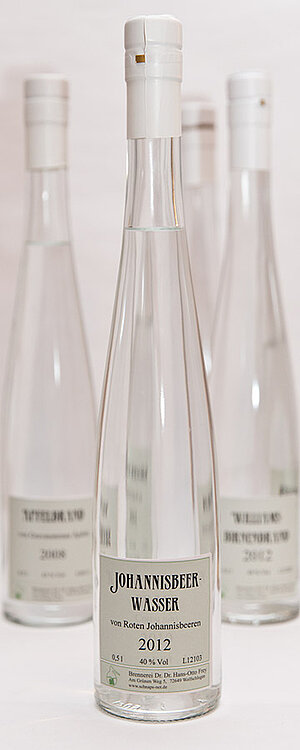 Johannisbeerwasser wird aus vollreif geernteten schwarzen Johannisbeeren gewonnen.