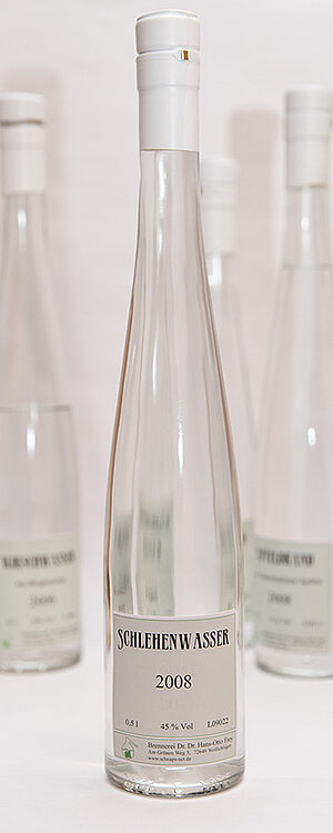 Schlehen wachsen auf Sträuchern mit zum Teil sehr langen und spitzen Dornen. Deshalb pflanzte man früher Schlehenhecken als wehrhaften Zaun, der vielen Vögeln und Schmetterlingen Schutz und Nahrung gibt. Man findet sie überwiegend an Wald- oder Wegesrändern, und sie sollten erst nach einigen Frostnächten geerntet werden. Schlehen vergären nur sehr schwer, da sie sehr viele Bitterstoffe und Gerbstoffe enthalten. Die Alkoholausbeute einer Schlehenmaische beträgt oft nicht mehr als 2 bis 3 l Alkohol pro 100 l Maische. Der Geschmack des fertigen Destillats erinnert an Kirschwasser.