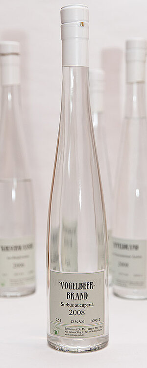 Der Vogelbeerbaum ist eine wichtige Futterpflanze für 31 Säugetier- und 72 Insektenarten. Von den Früchten leben 63 Vogel und 20 Säugetierarten. Nach der Ernte werden die traubenartigen Fruchtstände abgebeert und die Beeren gemahlen, wobei peinlich darauf geachtet wird, dass keine Stiele mit in die Maische gelangen. Vogelbeermaischen vergären sehr schlecht, und die Gärung kann sich über Monate hinziehen. Die Alkoholausbeute liegt zwischen 1 und 2 l Alkohol pro 100 l Maische. Es entsteht ein hocharomatischer Brand, manchmal an Marzipan erinnernd, der allerdings nicht jedermanns Geschmack ist.