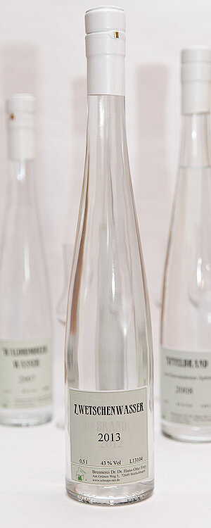 Es gibt etwa 800 verschiedene Zwetschgensorten, die sich mehr oder weniger zum Destillieren von Zwetschgenwasser eignen. Manche Sorten haben ein etwas penetrantes Aroma, manche ergeben ein fremdes, fast ungenießbares Aroma. Berühmt sind die Zwetschgen (»Slivky«) aus Slowenien und der Slowakei, die den berühmten Slivovic ergeben. Seit einigen Jahren fahren wir nach Hornu Obdokowze in der Slowakei, um optimale Zwetschgen für unser Zwetschgenwasser zu erhalten. In jüngster Zeit erproben wir Schwäbische Zwetschgen und hoffen, ein adäquates schwäbisches Zwetschgenwasser zu erhalten.